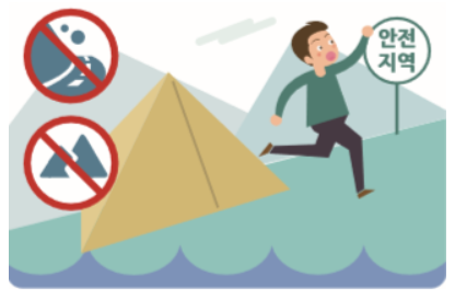 - 산간·계곡, 하천, 방파제 등에서 야영이나 물놀이를 멈추고 안전한 곳으로 대피합니다.