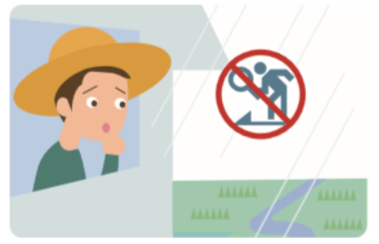 - 개울가, 하천변, 해안가 등 침수 위험지역은 급류에 휩쓸릴 수 있으니 가까이 가지 않습니다.