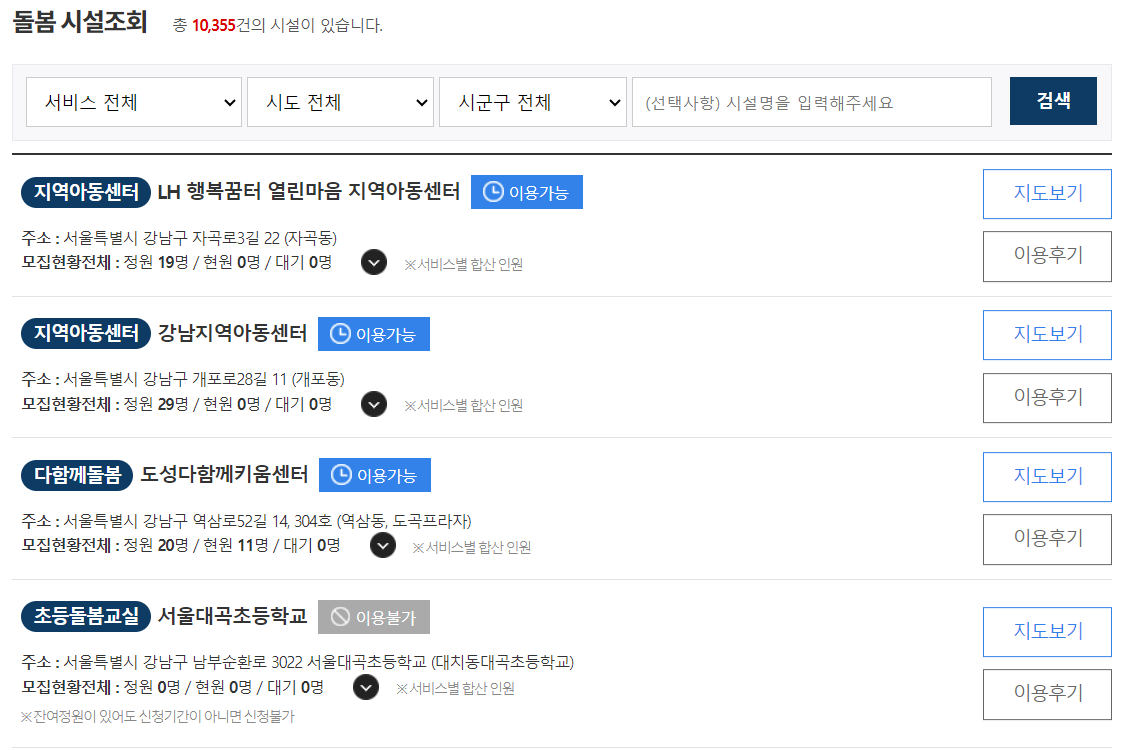 ※ 소득 수준과 무관, 각 지방자치단체(센터별)는 지역여건에 따라서 이용하는데 우선순위를 정할 수 있음.
